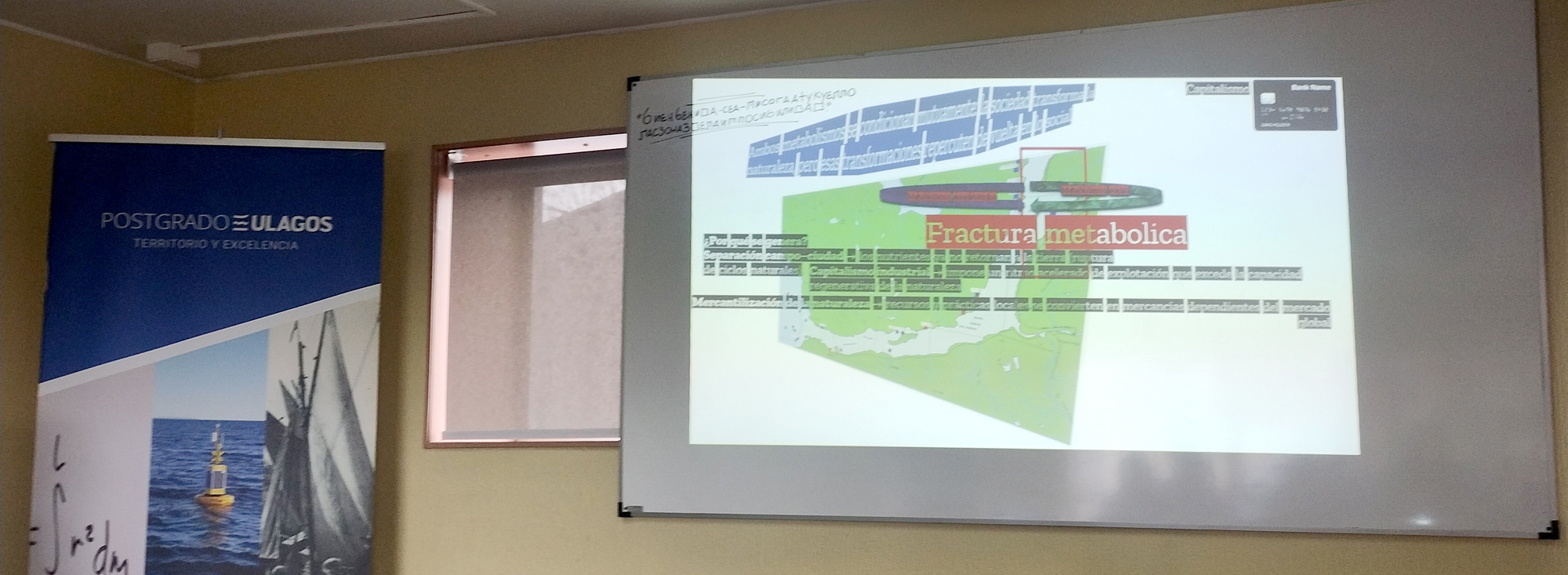Ante un público compuesto por estudiantes de antropología mayoritariamente y personas pertenecientes a grupos medioambientales llevaron a cabo un cronograma compuesto por tres presentaciones y un diálogo abierto: “Marxismo Ecológico y la Fractura Metabólica del río Damas en Osorno (Bayron Cea)”, “Fractura metabólica y la salmonicultura del estuario del Reloncaví” (Eduardo Stuardo), “Fractura metabólica y el turismo al Valle del Cochamó” (Felipe Soto).